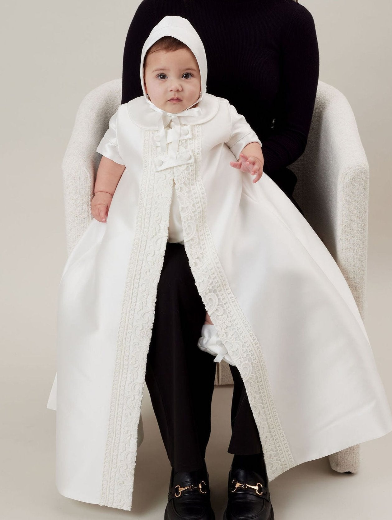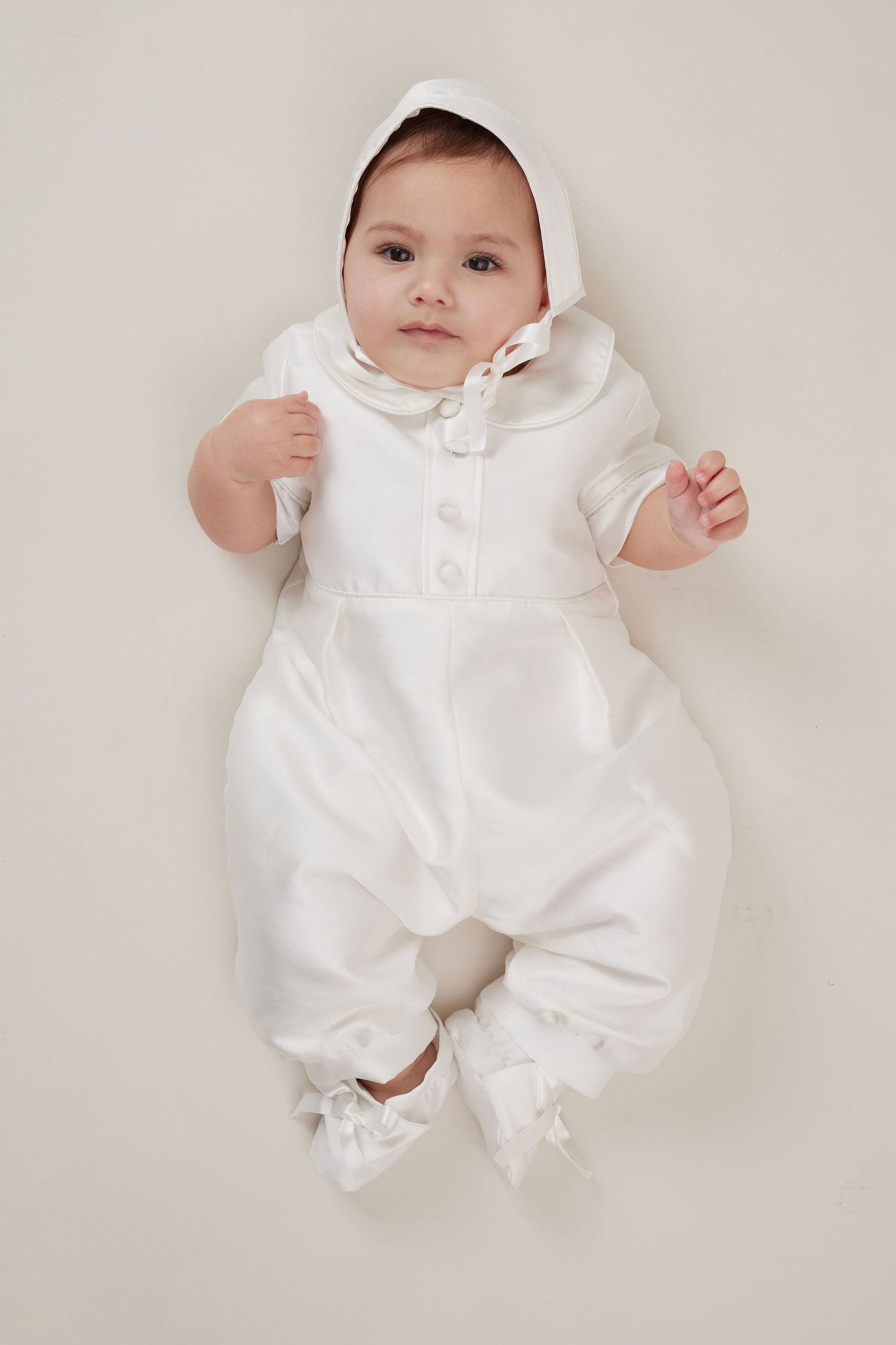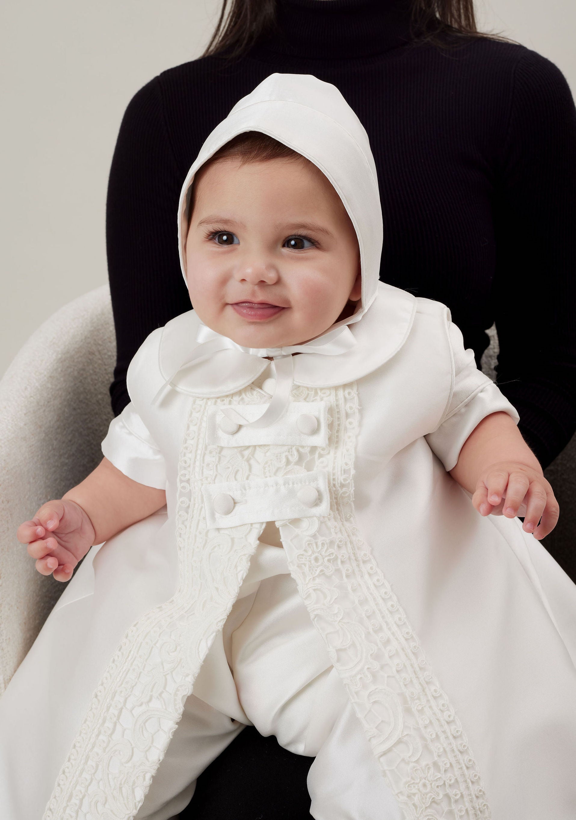Includes removable cape with trim detail, romper, bonnet & booties.